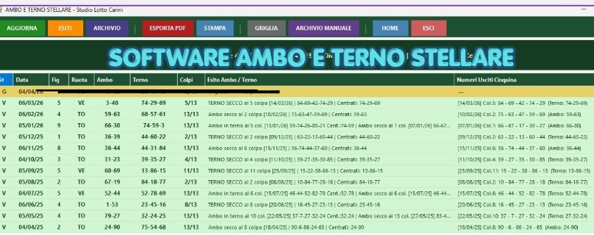 Esiti della tecnica Ambo e Terno Stellare da Aprile 2025