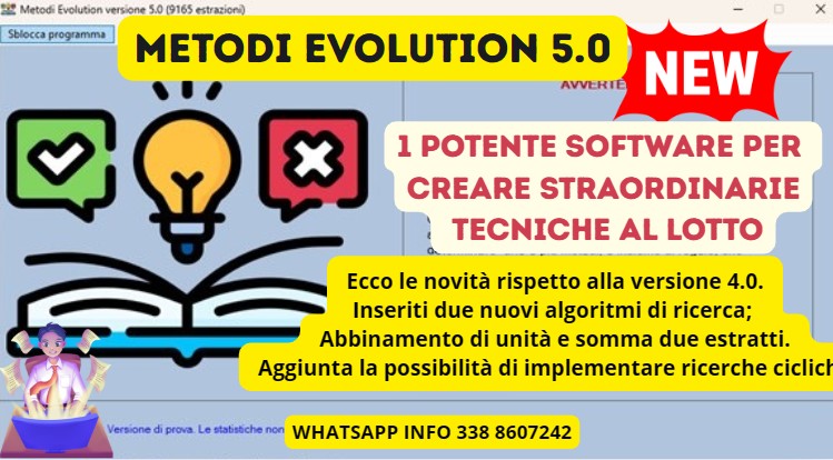 Categoria: Software Tag: 1 estratto determinato, 1 ruota lotto, 10 e lotto 5 minuti, estratto determinato, previsioni lotto, programmi lotto, quaterna lotto, software ciclometria, superenalotto