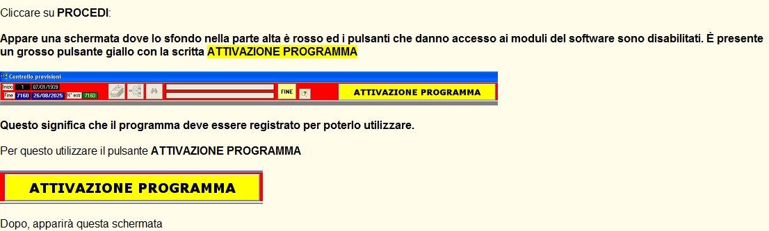 In questa videata si devono inserire i codici che consentiranno il corretto uso del programma.