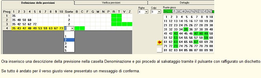 La barra in alto serve per selezionare una estrazione di riferimento. Ricordatevi che se viene definita una previsione, questa sarà messa in gioco dall’estrazione successiva a quella visualizzata.