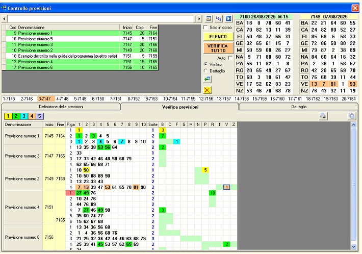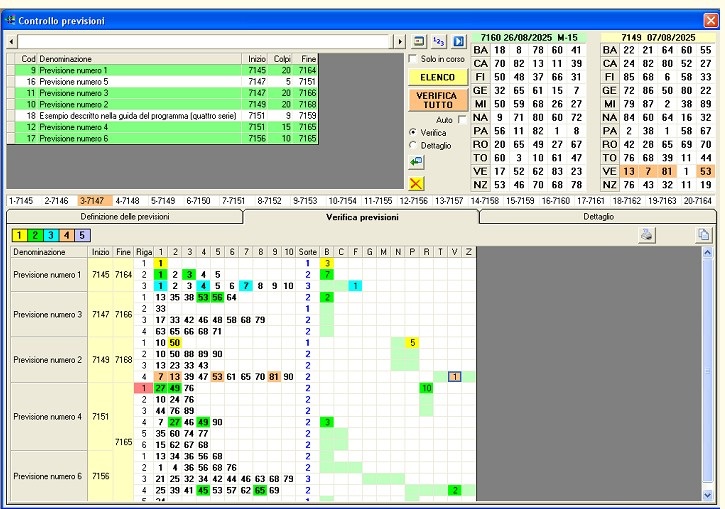 Tramite il pulsante VERIFICA TUTTO saranno controllate tutte le previsioni inserite (sempre tenendo conto della conformità del periodo di verifica rispetto all’estrazione selezionata)