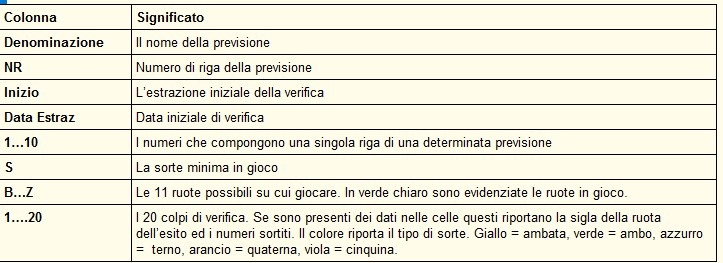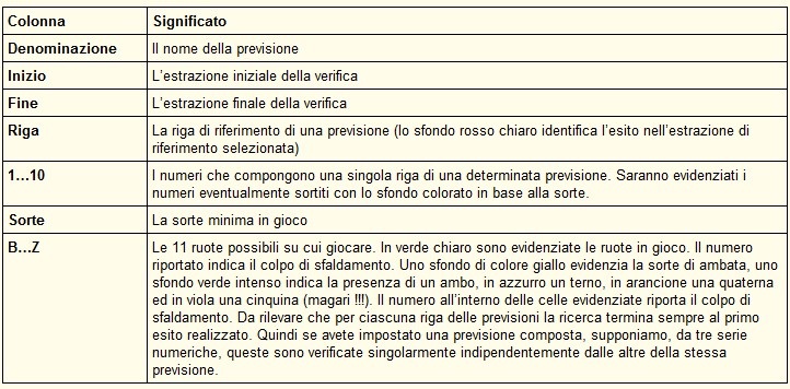 Praticamente l’estrazione di riferimento selezionata deve essere compresa tra i valori riportati nelle colonne Inizio e Fine delle previsioni.
