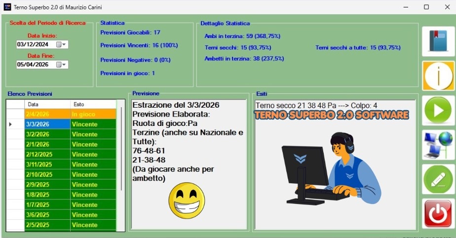 Esiti in dettaglio della tecnica Terno Superbo 2.0 da Dicembre 2024