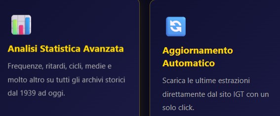 Funzione Multi-Spia: puoi cercare quando due o più numeri escono insieme nella stessa estrazione, per analisi ancora più precise.