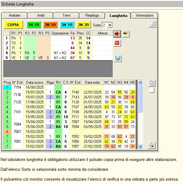 È inoltre possibile creare una lunghetta fino a 10 elementi, valida per sorti fino alla cinquina.