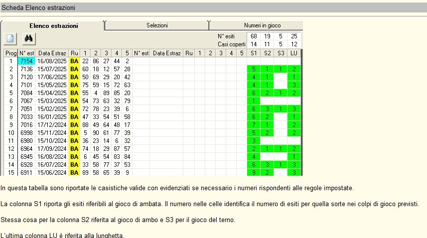 Il pulsante per ricavare l’elenco delle estrazioni che presentano le caratteristiche definite