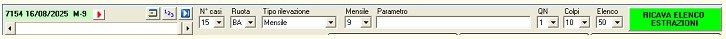 Barra per selezionare l’estrazione di riferimento (il pulsantino con la freccetta rossa serve per impostare l’estrazione mensile dell’estrazione selezionata)