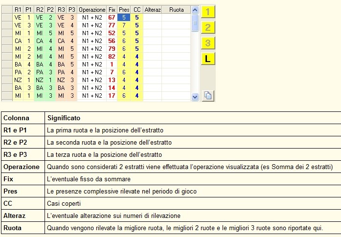 Questa è la tabella dove sono elencate le formule per ricavare i numeri da porre in gioco.